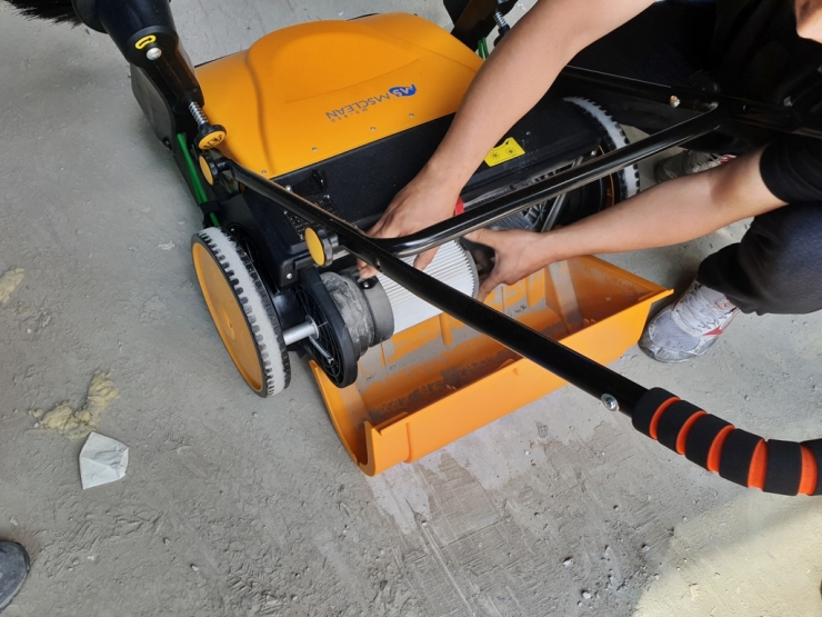 건식 보행식 무동력 스위퍼 마당쇠950 건설현장 공사장 야외 창고 축사 공장 청소기 : 크린만물상