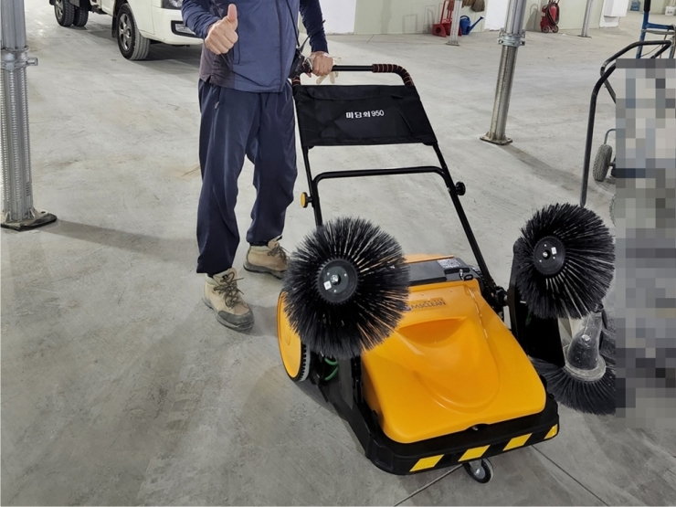 '아~ 이거 좋네!' 현장에서 극찬한 청소장비 추천 “아~ 이거 좋네!” 이 말은 마당쇠950을 처음 밀어본 현장 작업자분께서 자연스럽게 내뱉은 말입니다. 무겁지도 않고, 잘 밀리고, 먼지가 싹 사라지는 모습을 보자 진심 어린 반응이 튀어나온 거죠. 마당쇠950은 무동력 청소장비입니다. 전기나 연료를 사용하지 않고 작업자가 손으로 밀기만 하면 브러시가 회전해 먼지와 이물질을 효과적으로 수거합니다. 2개의 측면 브러시가 바깥쪽 오염을 가운데로 몰고, 중앙의 주 브러시가 다시 이를 쓸어 담아 내부 청소통에 모아주는 구조입니다. 하지만 이 제품은 물청소나 바닥을 닦는 용도는 아닙니다. 젖은 기름때나 찌든 때 제거는 불가능하며, 마른 오염물(예: 흙, 모래, 시멘트 가루, 낙엽 등)에 특화되어..
